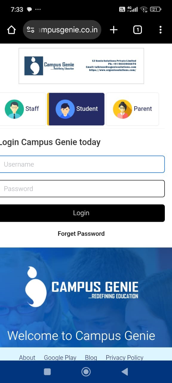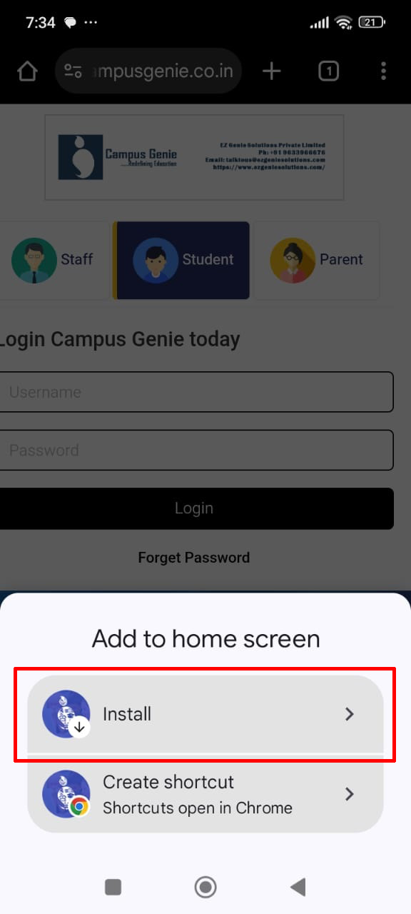 Chrome browser on your mobile and type your campus url (https://dev-app.campusgenie.co.in) in the search bar