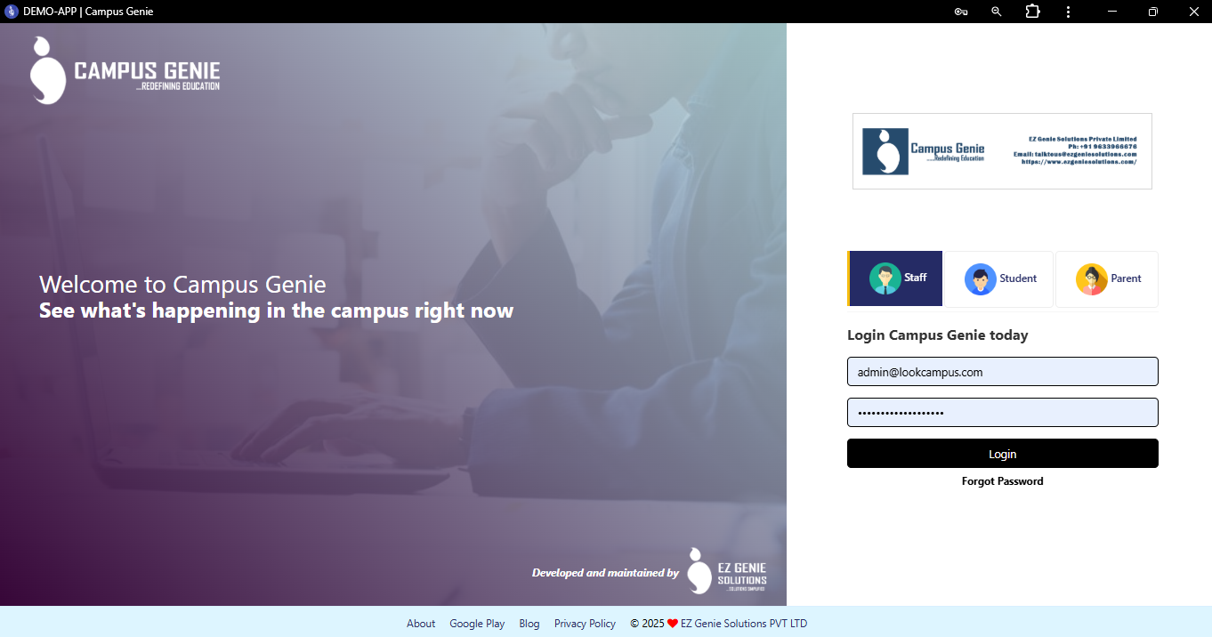 Click on the icon to open the Campus Genie Application